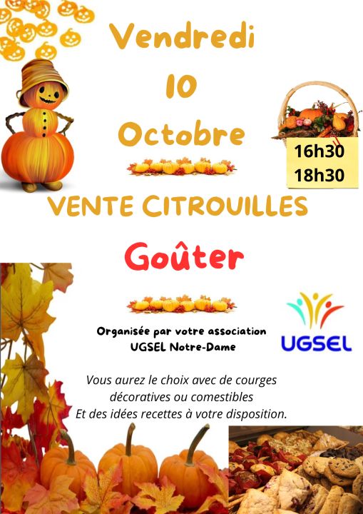 Vous l'aviez peut-être noté, ce Vendredi 10 Octobre 2025 à sortie de l'école, L'UGSEL organise le 1er goûter de l'année, accompagné de la traditionnelle vente de citrouilles🎃.